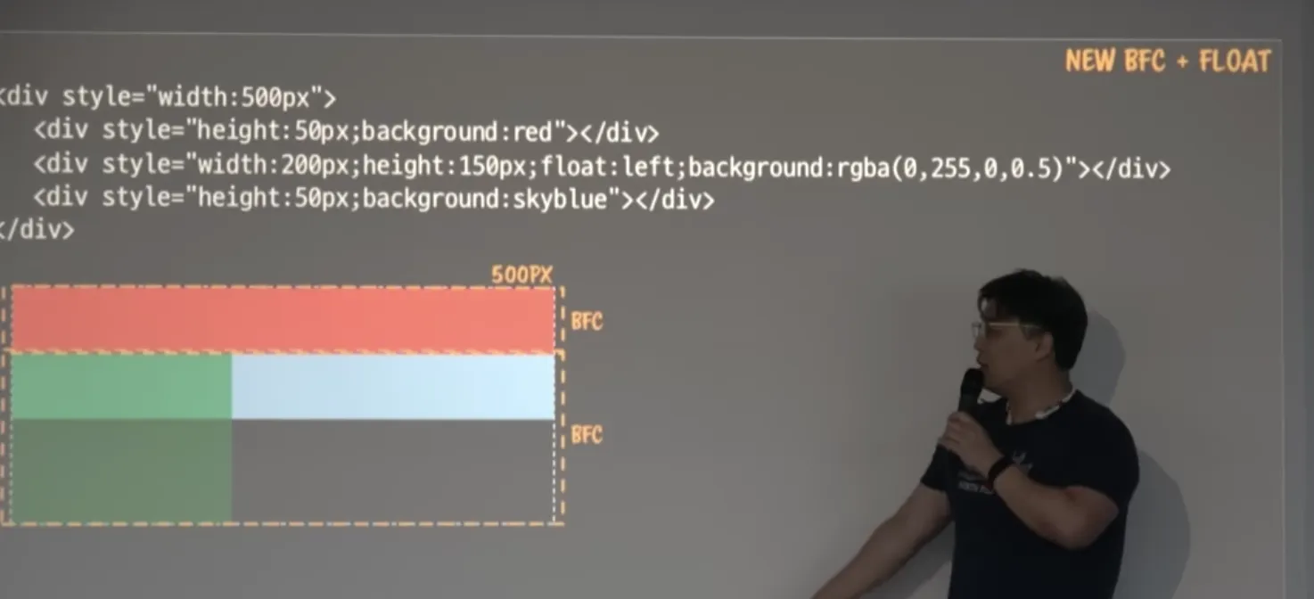 float div가 등장하면 bfc가 새로 생김. float bfc는 위에 생김.