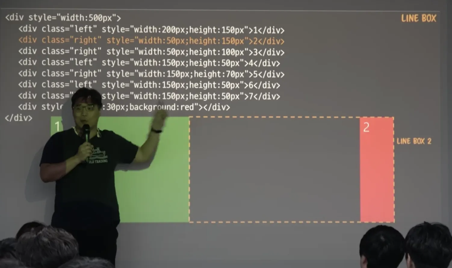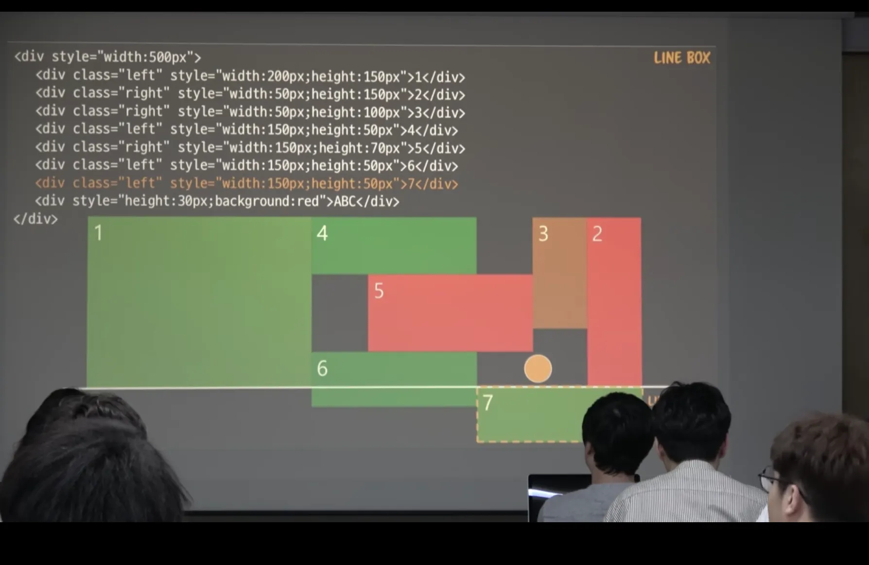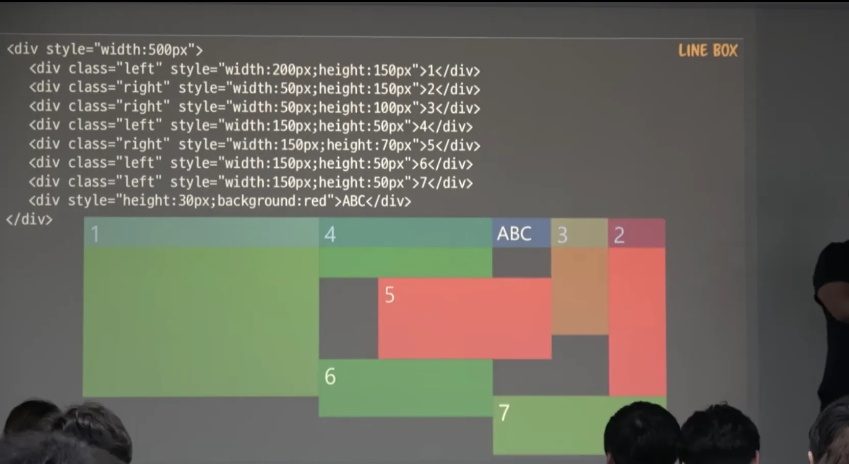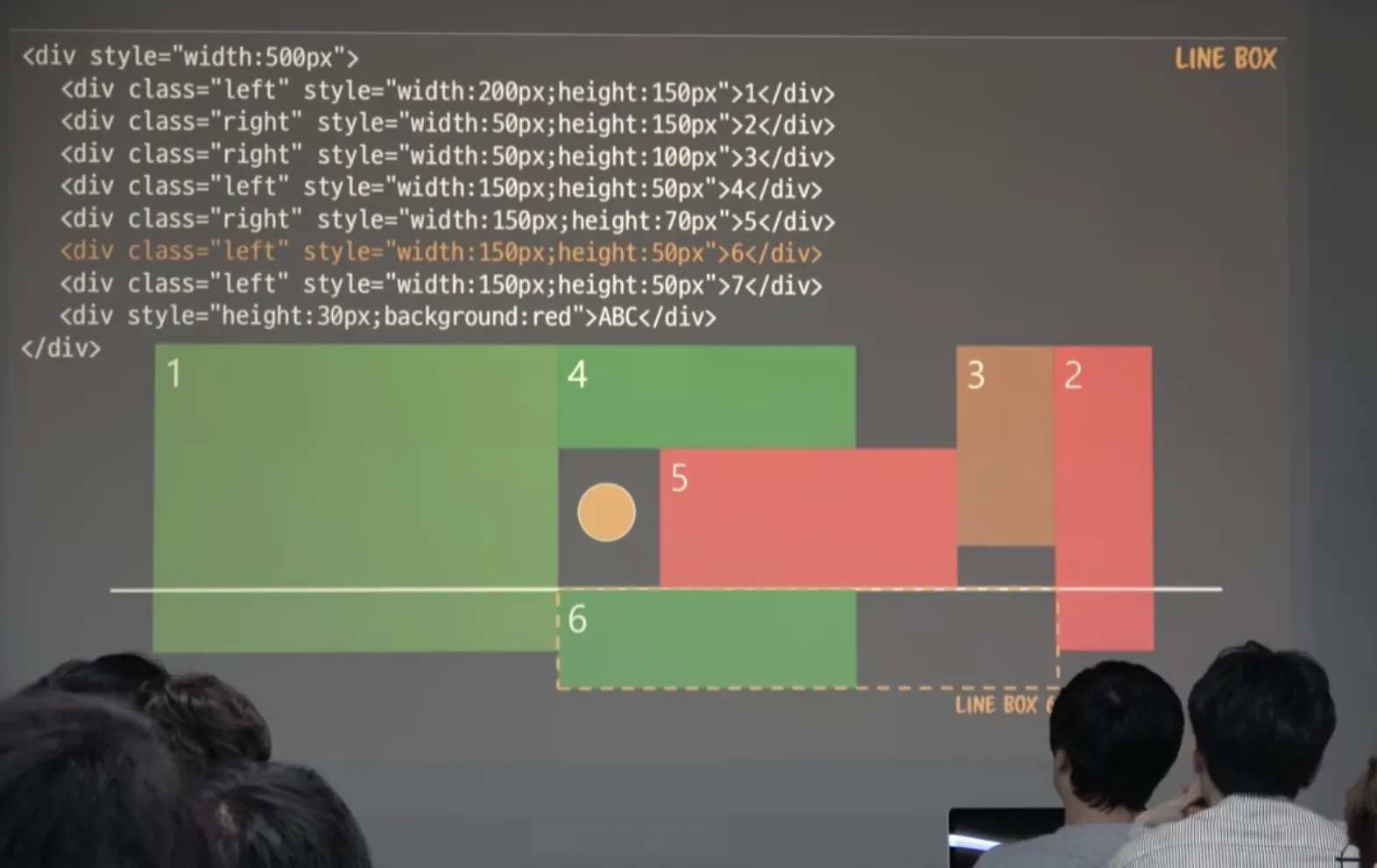 line box 내에서 float가 차지한 영역은 신경쓰지 않음 → 처음 float을 뺀 나머지 영역이 line box 영역이 됨.