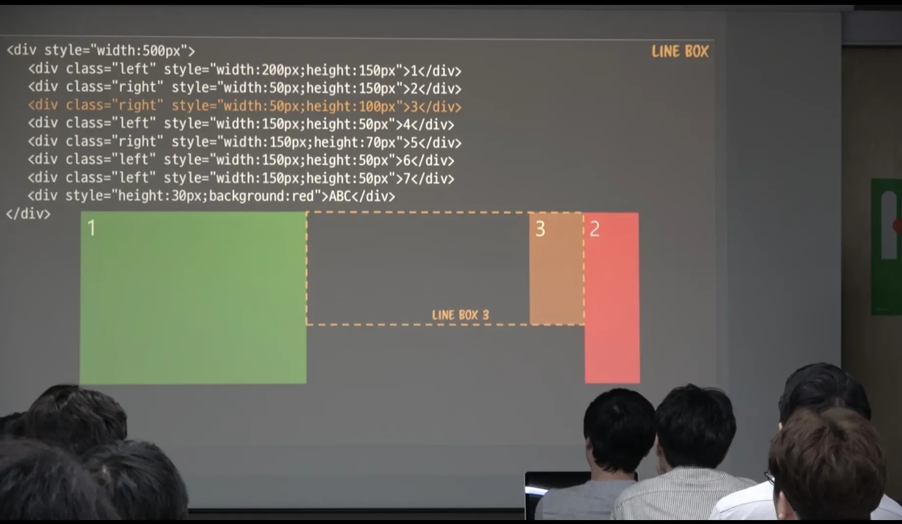 line box는 height도 봄. 3번째 float에서 쓸 영역은 100height만 있으면 되므로 줄어듦