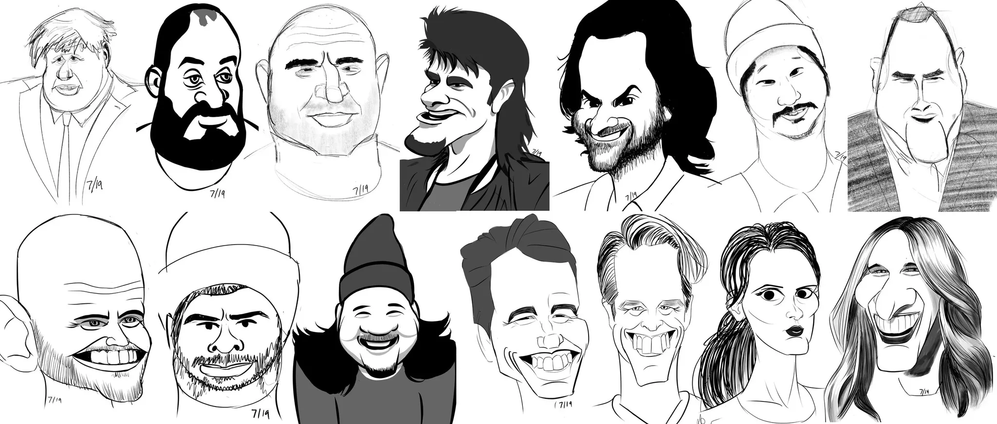 그는 오랜만에 그림을 시작하면서 대상의 특징을 잡아내는 능력이 부족하다는 걸 깨달았다. 오른쪽과 같이 사실적으로 묘사하는 그림은 괜찮다고 느껴지는 반면 특징을 잡아내야 하는 카툰 느낌의 그림을 다소 어색해보인다고 생각했다.