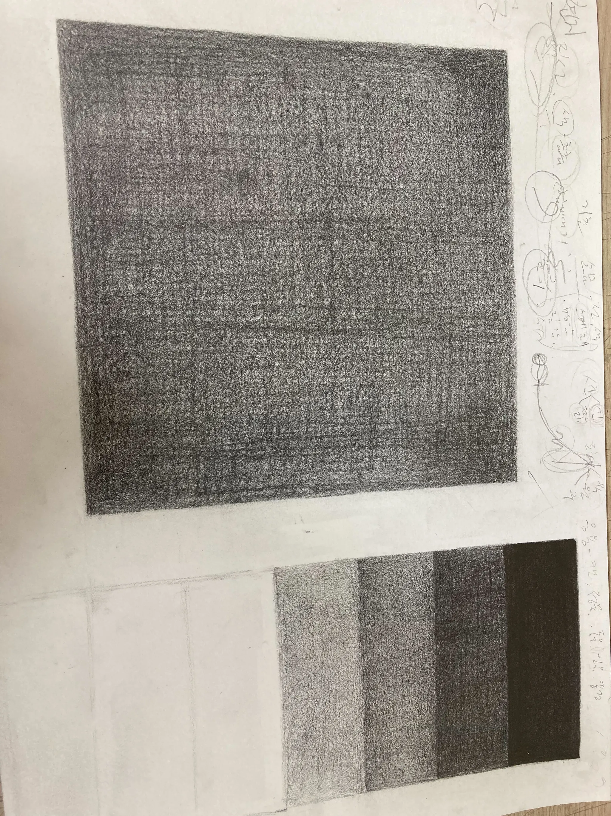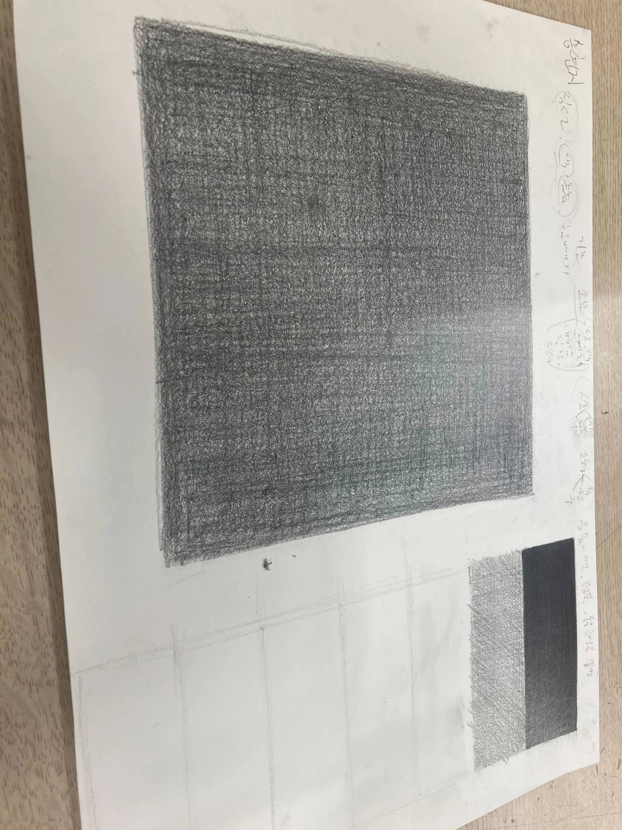 이 날은 부원장님이 가르쳐주셨는데, 왼쪽 네모의 모서리가 많이 정리되었고 오른쪽 명암 표현에서 테두리 간격을 똑같이 하고 선도 드러나지 않게 그리게 되었다. 부원장님이 그림 그리는 사람 중에 돌+아이가 많다고, 자기 작품에 몰입해서 아주 작은 디테일도 놓치지 않으려고 하는 사람들이 많다고 한다. 대충 그리려고 하면 안된다고 말씀해주셨는데 나도 그런 돌+아이가 되기 위해 노력해야겠다.
