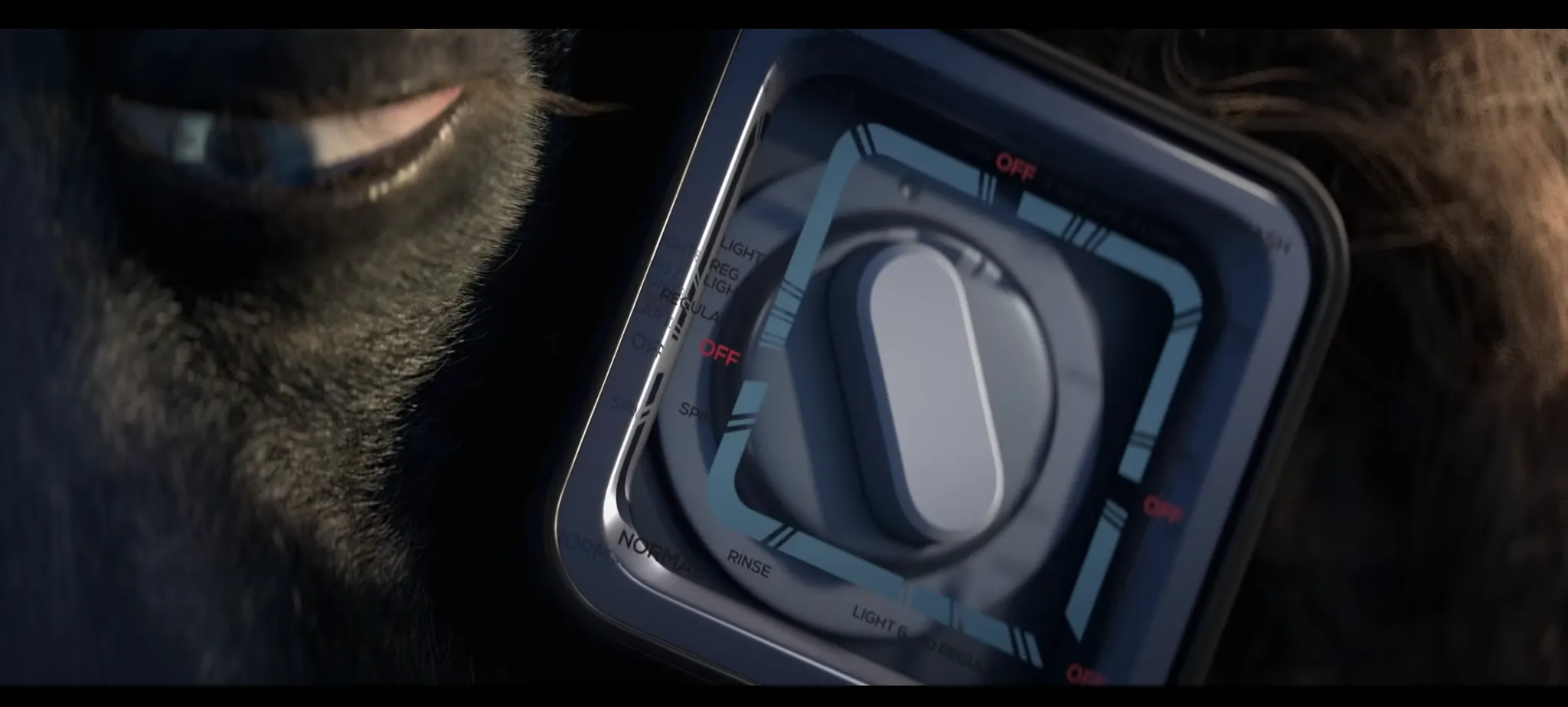 목줄에 붙은 장치는 세탁기의 타이머와 같다. rinse, permanent, wash 등의 단어가 적혀 있다. 빅터의 시계가 작동하자 세탁기의 타이머도 돌아가기 시작한다.