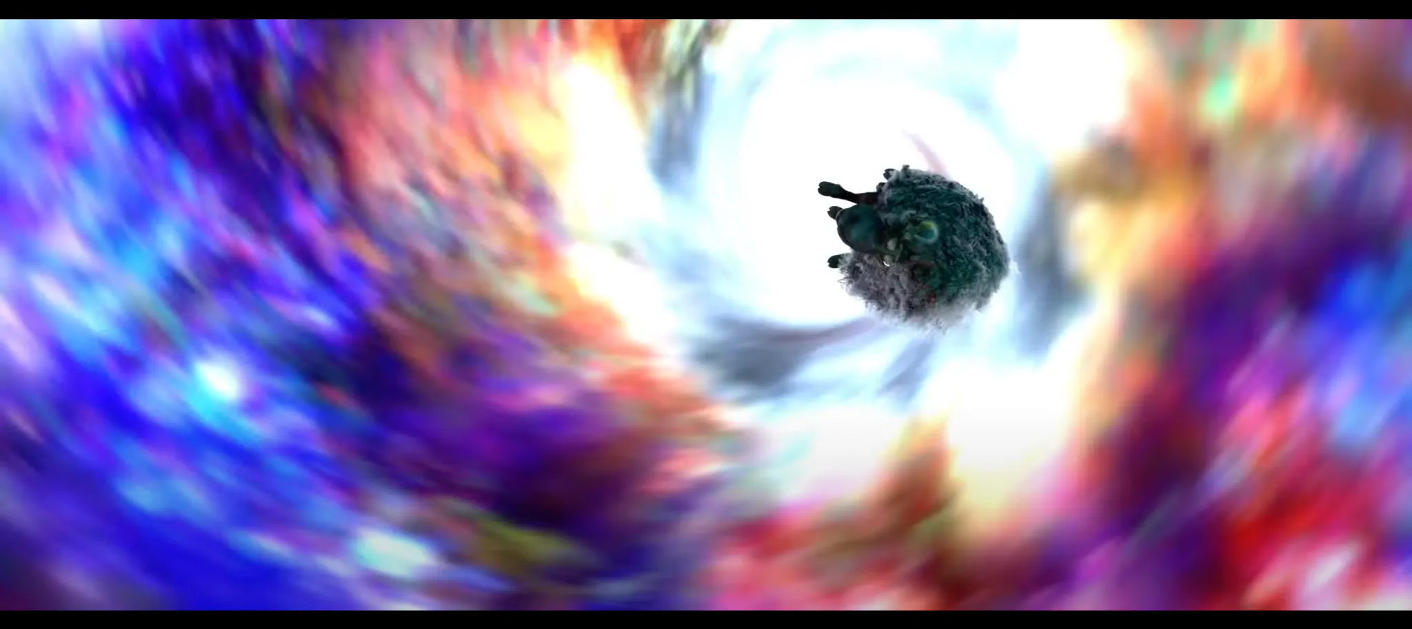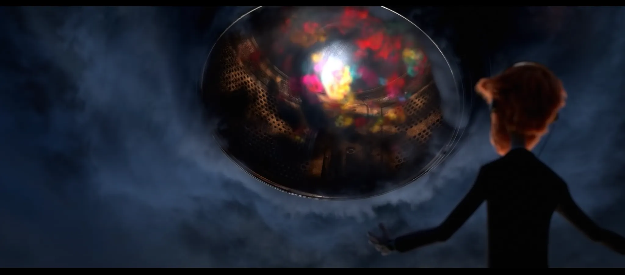 시간이 지나자 세탁기 안쪽이 비치듯 하늘에 구멍이 생기면서 여러 빛깔로 이루어진 토네이도가 내려온다. 빅터는 기다렸다는 듯 환희에 찬 미소로 토네이도를 받아들인다.