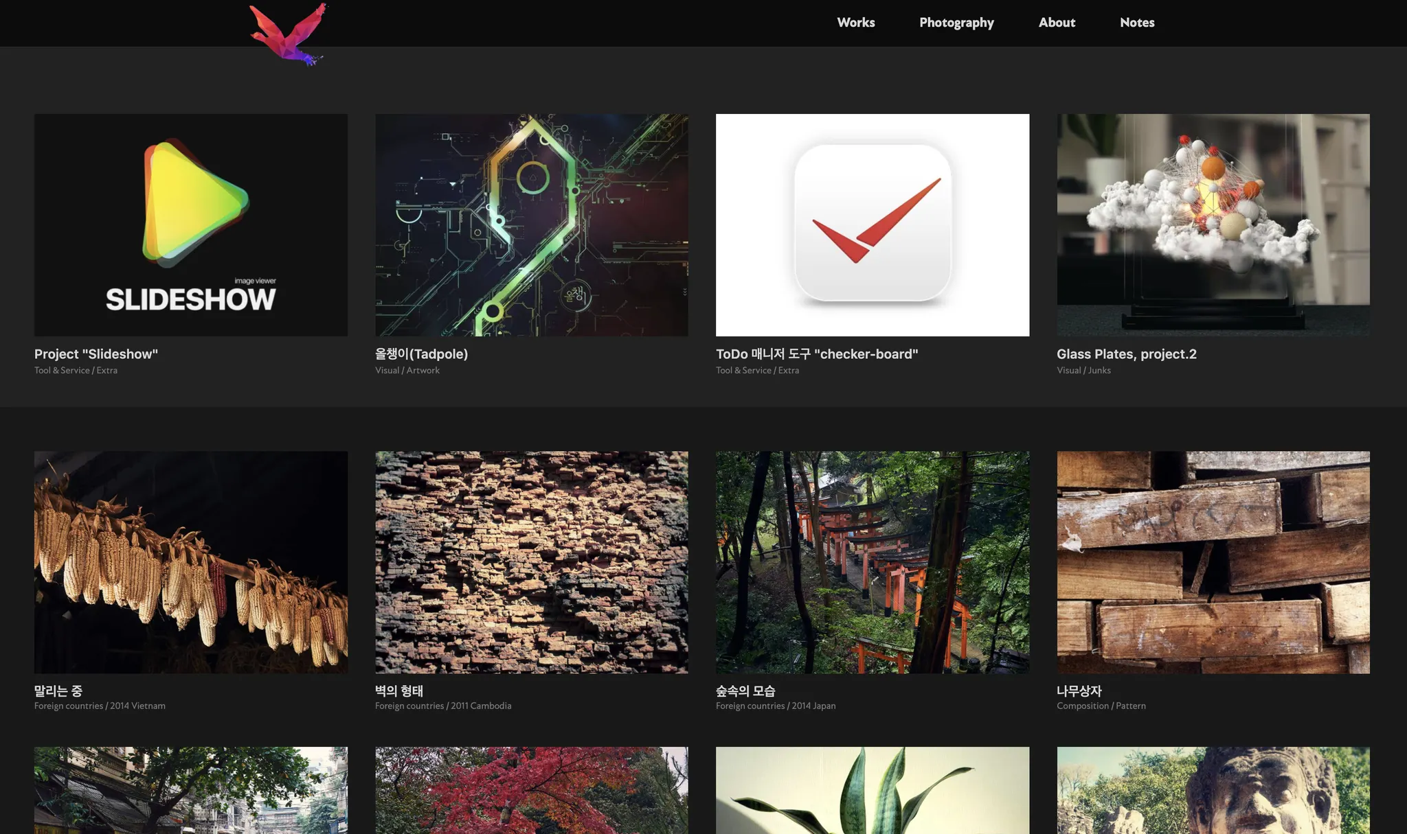 블로그에서 사진, 그래픽 디자인, 프론트엔드 개발과 관련된 작업물을 확인할 수 있다.