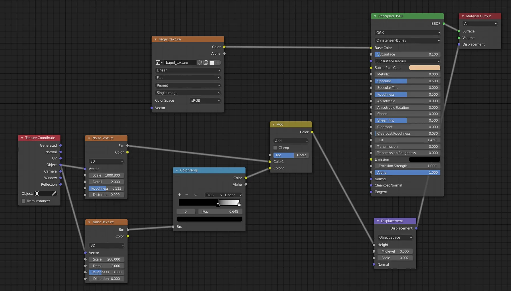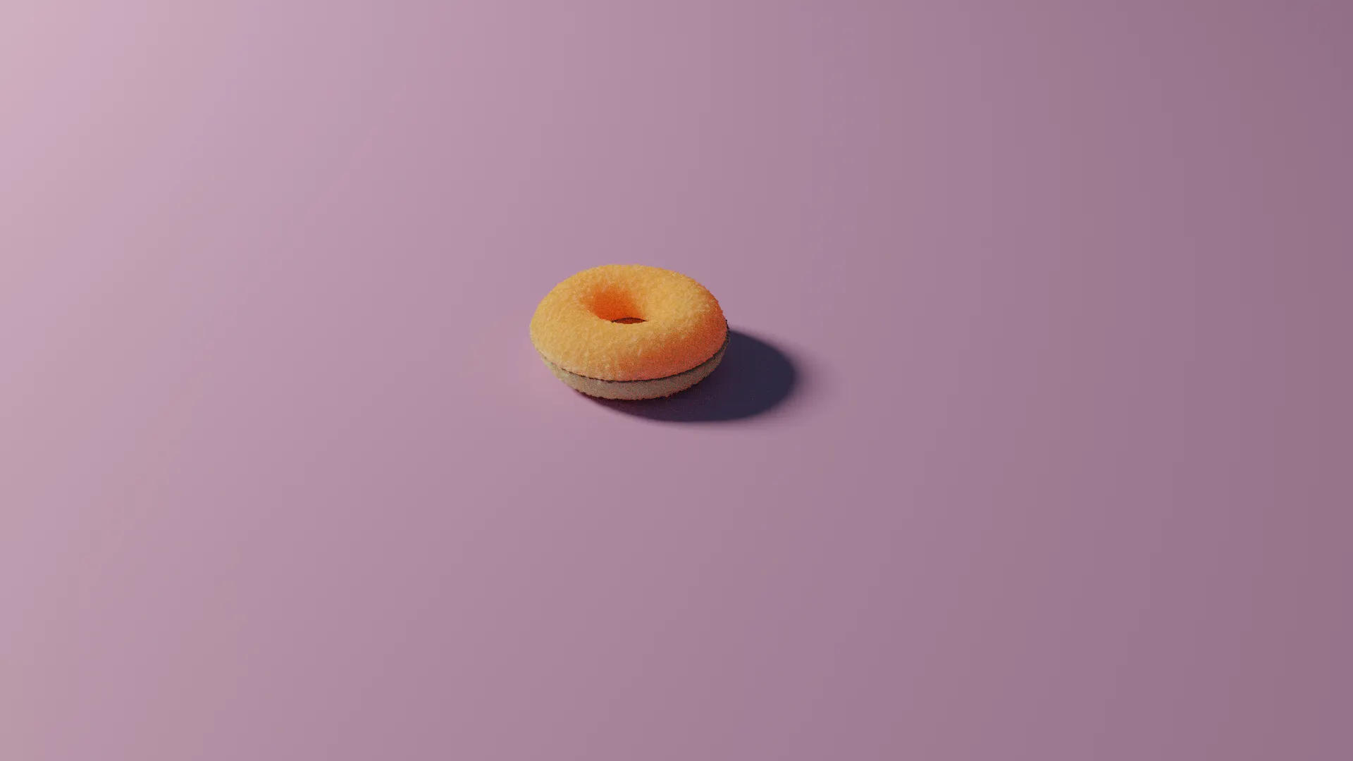 도넛 튜토리얼을 응용해 만들었다. 도넛의 가운데를 자르면 절단면이 없는 채로 나뉘게 되기 때문에 Plane 오브젝트로 절단면을 대신했다. bisect로 자를 때 fill로 채울 수 있지만 Torus object의 경우 절단면의 vertices를 매우 촘촘하게 해야 깔끔하게 채워진다. subdivision으로 매우 촘촘히 만든다고 해도 컴퓨팅이 많이 걸리는 작업이기 때문에 이런 케이스에는 별로 추천하지 않는다.