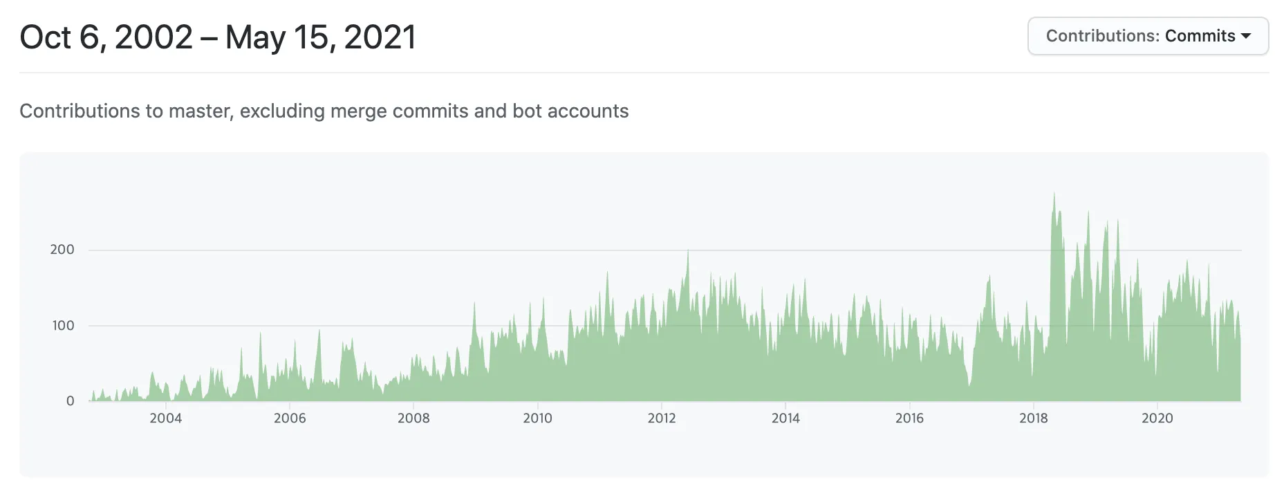 물론 기업 소프트웨어에 비해 오픈소스는 체계적으로 관리되기 어렵고 메인테이너의 지속적인 노력과 관심으로 인해 유지되기 때문에 생존 가능성이 불확실할 수도 있다. 하지만 아래 깃허브 인사이트에서 볼 수 있듯이 블렌더는 현재도 활발하게 개발되고 있다. 또한 무료 3D 모델링 툴을 원하는 사람들, 그리고 여태껏 Blender를 개발해왔던 사람들이 있기 때문에 Blender는 쉽게 사라지지 않을 것 같다. Blender와 오픈소스 정신이 계속 이어졌으면 좋겠다. 그리고 이러한 오픈소스 문화의 수혜자만 되기보다는 기여자로서도 참여하고 싶다.