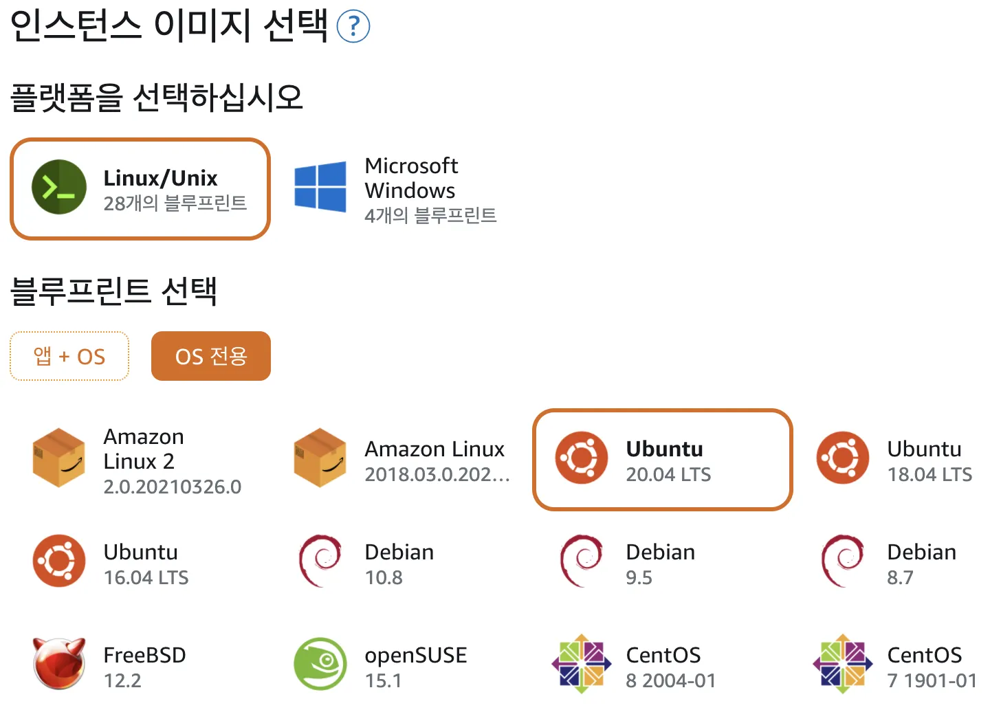 lightsail에서 자유롭게 환경을 구축하기 위해 ubuntu를 선택했다.