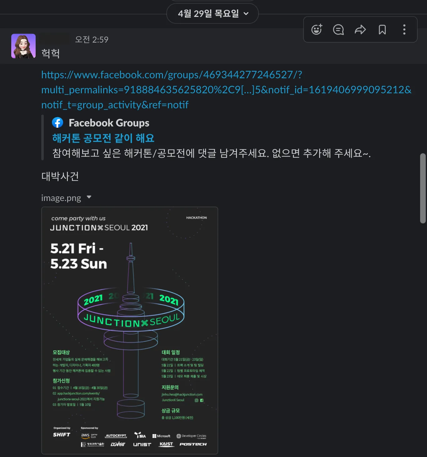 팀빌딩 채널에서 예전에 해커톤, 아이디어톤을 같이했던 사람들을 만날 수 있었다. 이렇게 반가울 수가. 역시 해커톤을 하면 비슷한 사람들을 계속 만날 수 있다.