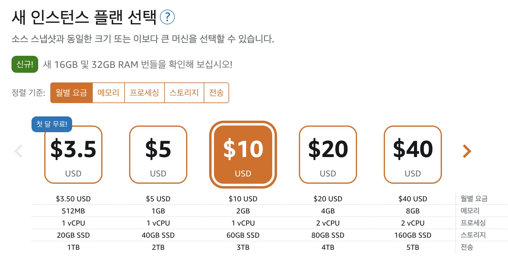 lightsail 플랜 선택