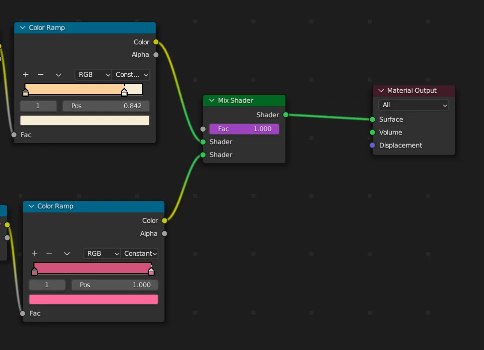 mix shader로 shape key에 따라 각각 다르게 적용할 material 연결