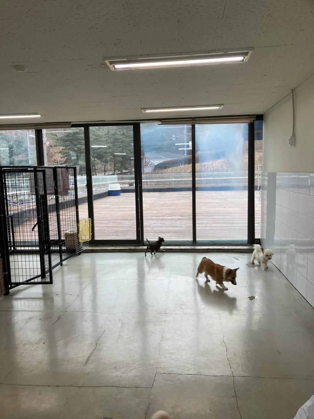 1층은 중형,대형견, 2층은 소형견들이 지내고 있다.